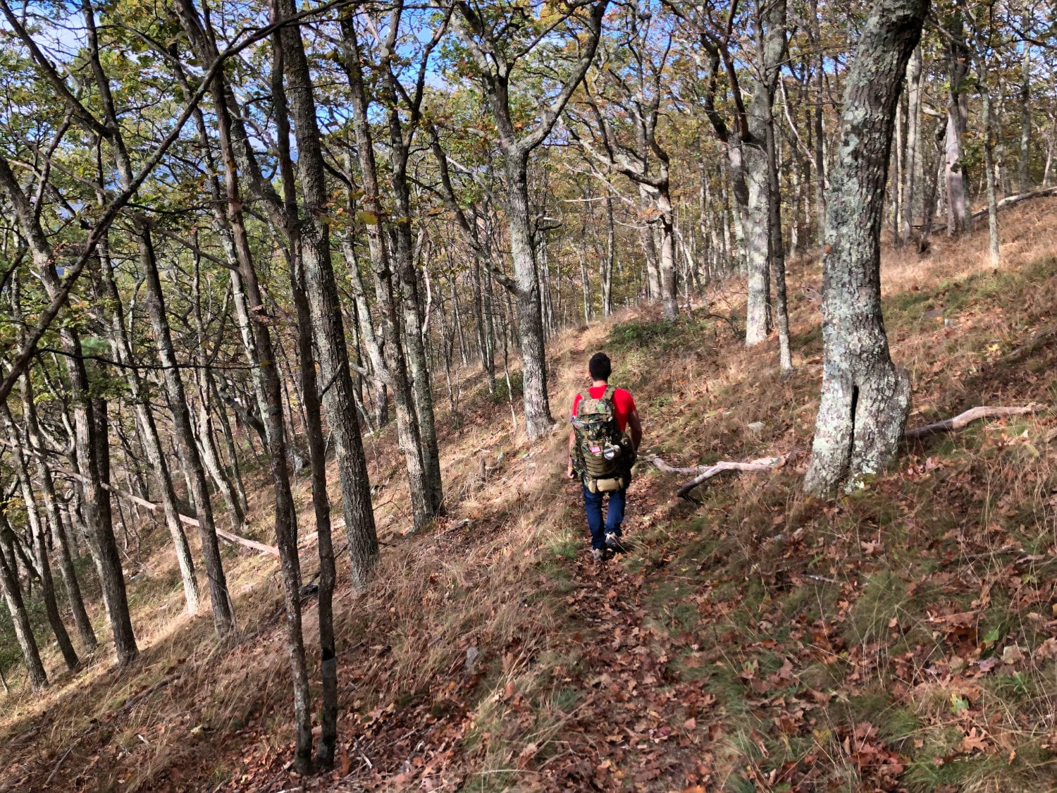 North Fork Mountain Trail runs along a ridge past the back side of Seneca Rocks. It’s a gorgeous hike with so many beautiful vistas that after awhile you don’t even bother to take the time and look. The only downside is that there’s not many reliable water sources since it’s high on a ridge. This means you pack a lot of water. Water is heavy! I packed two and a half gallons of it, which of course turned out to be too much. I always overpack. I hate suffering and so I try to minimize it by bringing along the remedy for any conceivable calamity.