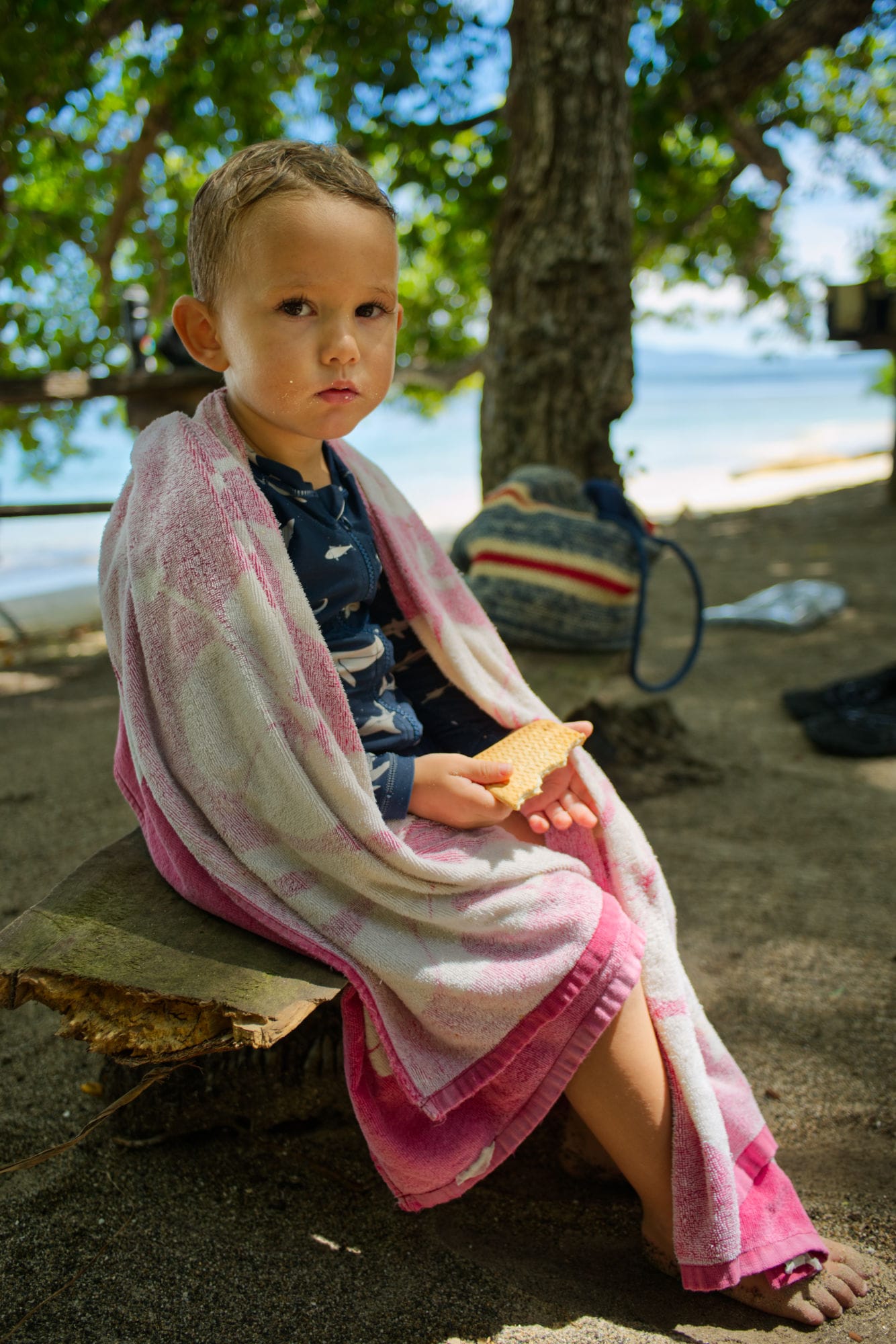 We had it at Wom Beach, our favorite destination here in Wewak. Sure, we paid several Kina to use the beach but it’s still cheaper than Chuck-E-Cheese or some chlorinated swimming pool with screeching lifeguards. Plus, here we occasionally get stung by a jelly fish or get bitten by sand fleas, which are character building events that help us remember our place in the world. At least that’s what I tell Elliot when it happens. He seems to get stung by jelly fish the most often, for some reason. Janice tells me not to lecture our kids when they’re screaming in pain, though I think painful events hit the “Save” button in our brains, thus helping us remember it next time. That’s why I cram in as much advice as I can when my kids are experiencing some sort of trauma. Sometimes I smack them just so I can give them wisdom to remember.