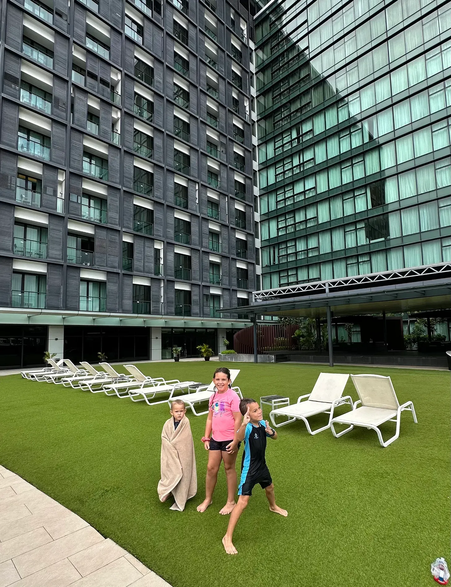 We arrived at the hotel and the kids immediately exploded in all directions, like confetti at a party.